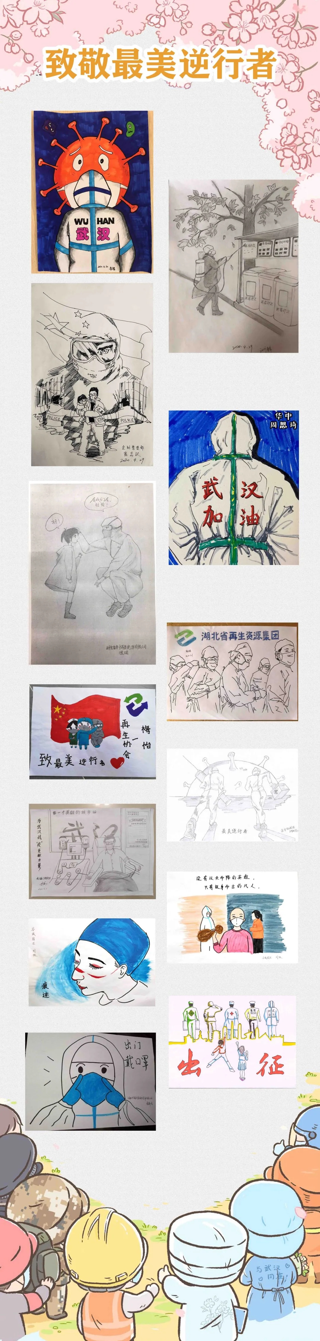 為紀(jì)念五四愛國運(yùn)動(dòng),弘揚(yáng)愛國精神,激發(fā)青年員工立足本職、勤奮敬業(yè)的工作熱情,湖北省再生資源集團(tuán)團(tuán)支部組織開展“致敬最美逆行者”手繪分享活動(dòng)。青年員工紛紛用畫筆記錄下了此次疫情中一道道逆行的身影和一幕幕感人的瞬間,表達(dá)著對(duì)疫情中逆行者的敬意。